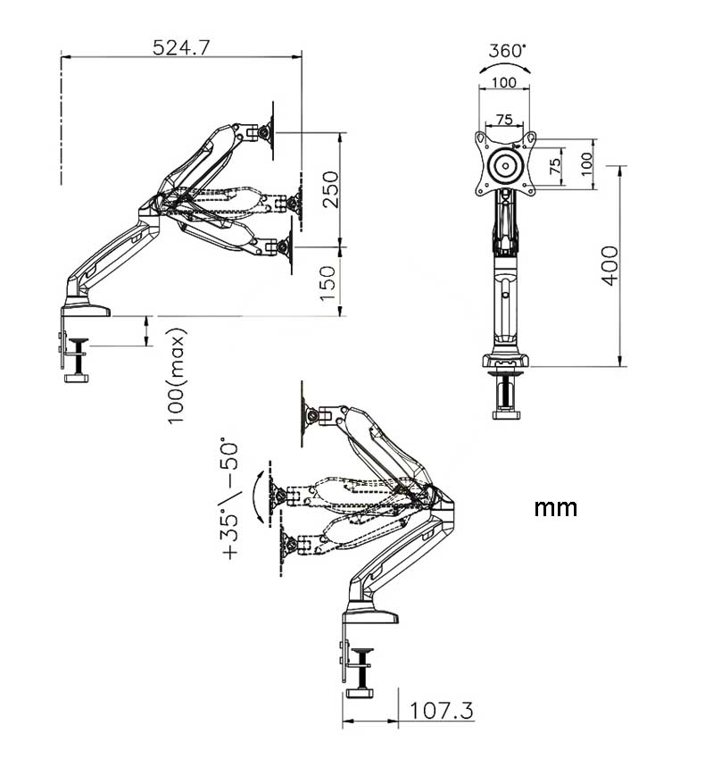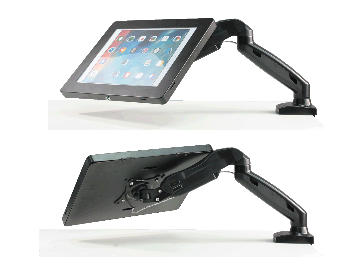 This Balance Arm tablet stand is with full motions flexibility in all directions. Ergonomic design effortless adjustment very relax when use.