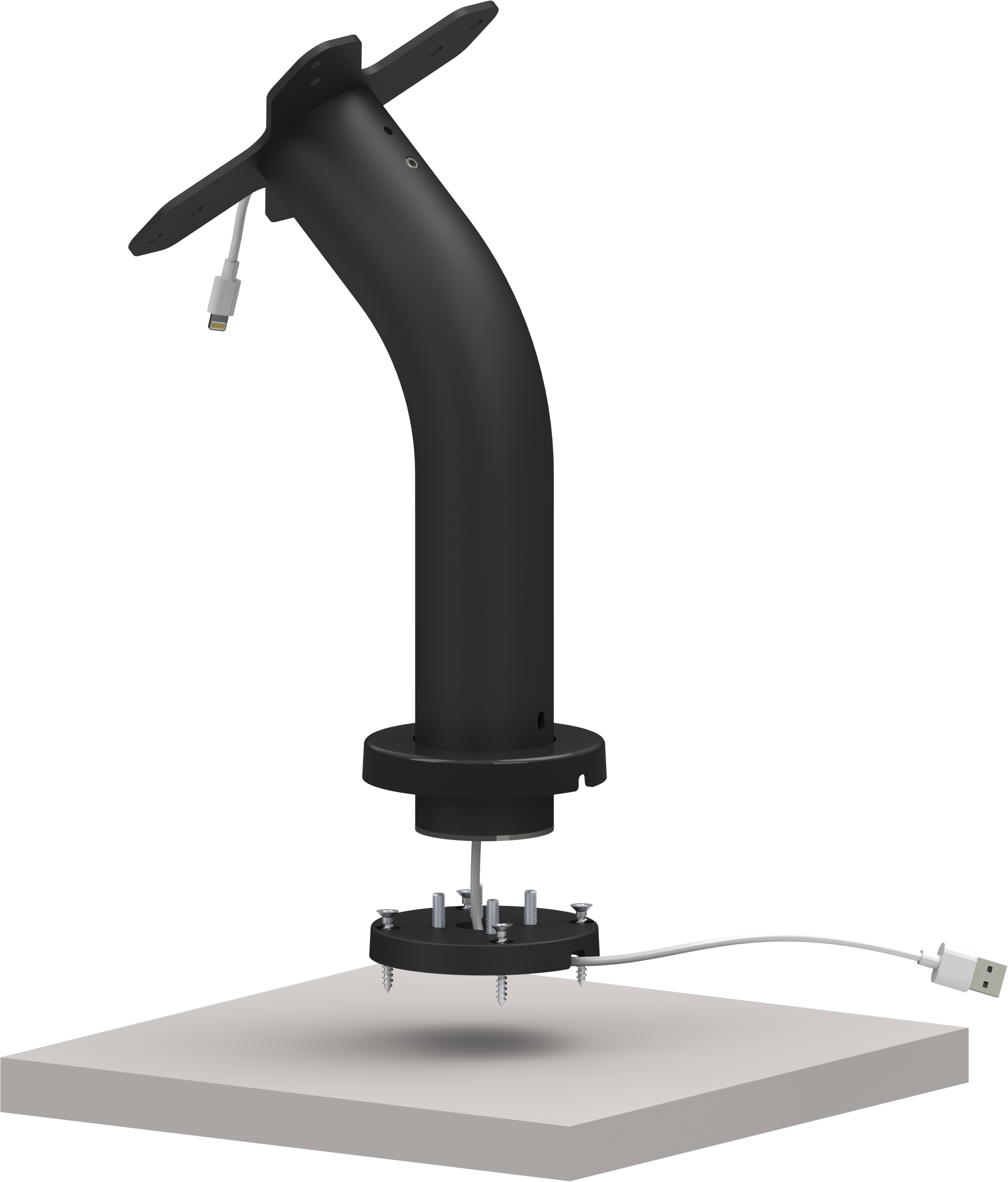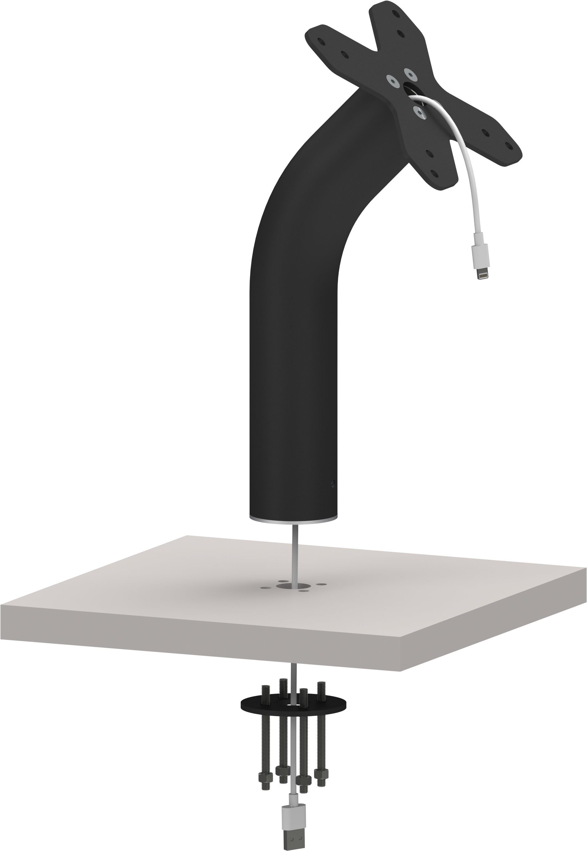 Cable can be routed inside of the tube and out from bottom, gives clean look.