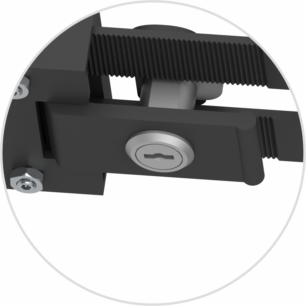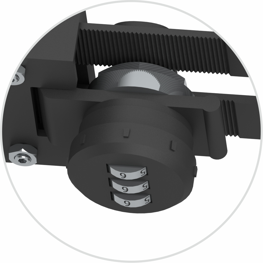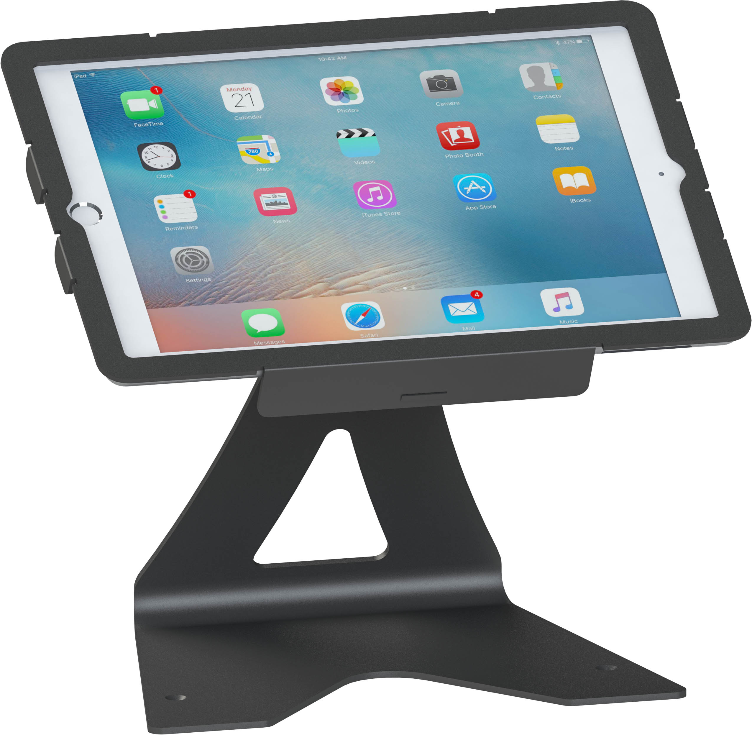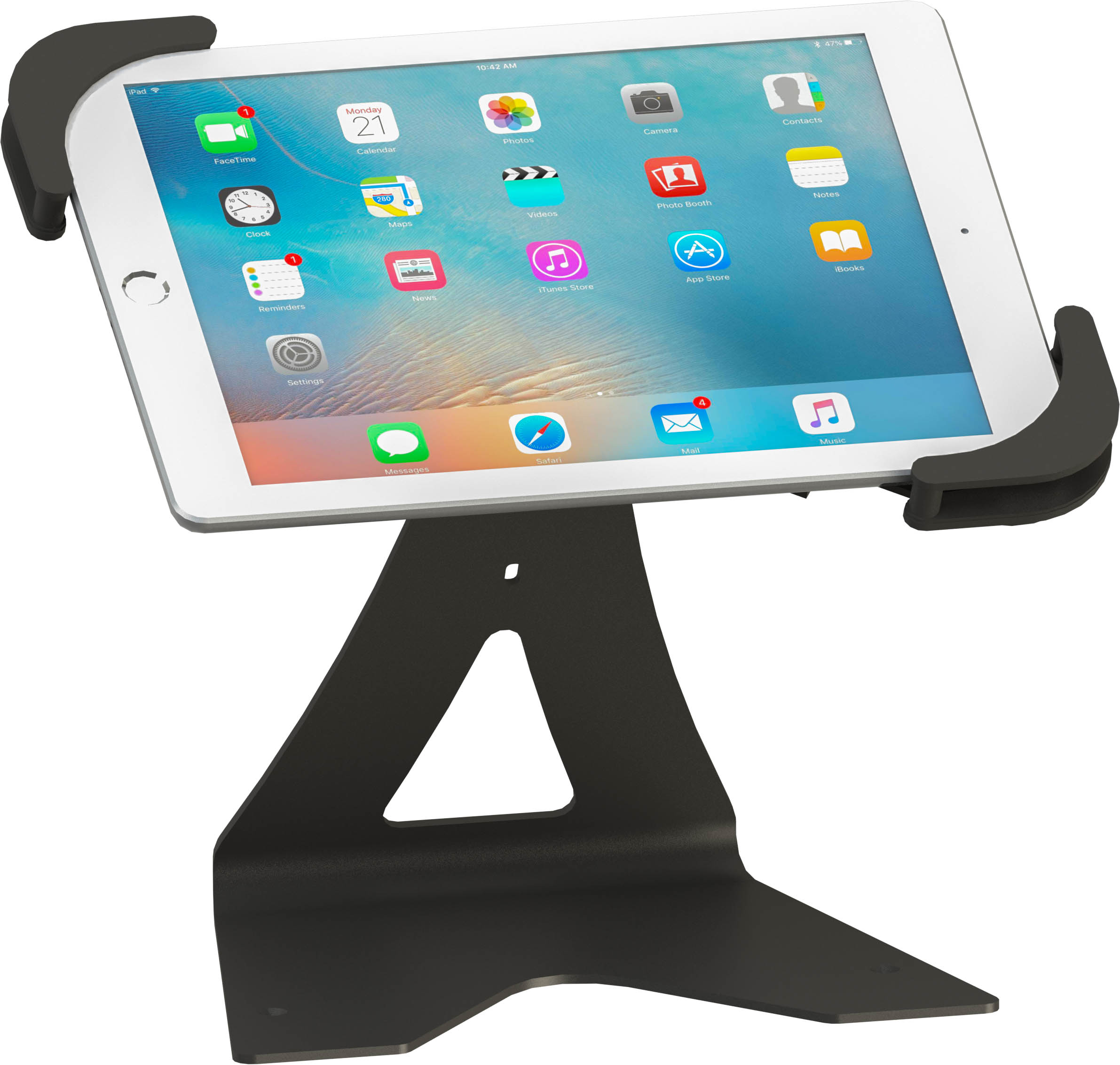 Kensington slot on base. Secure the tablet stand to nearby objects for additional security.
