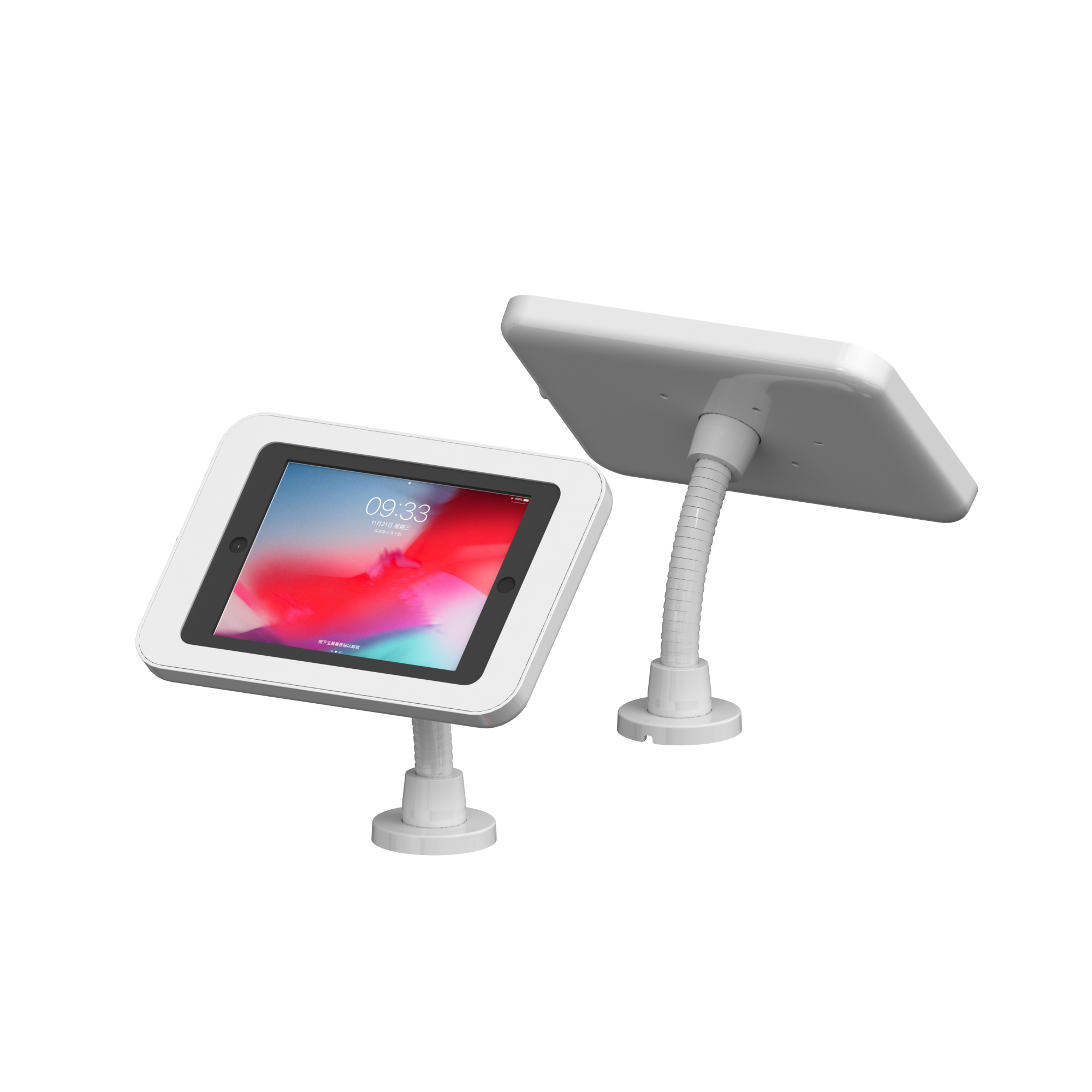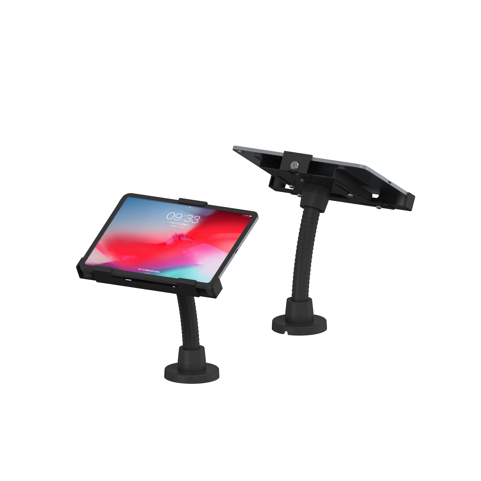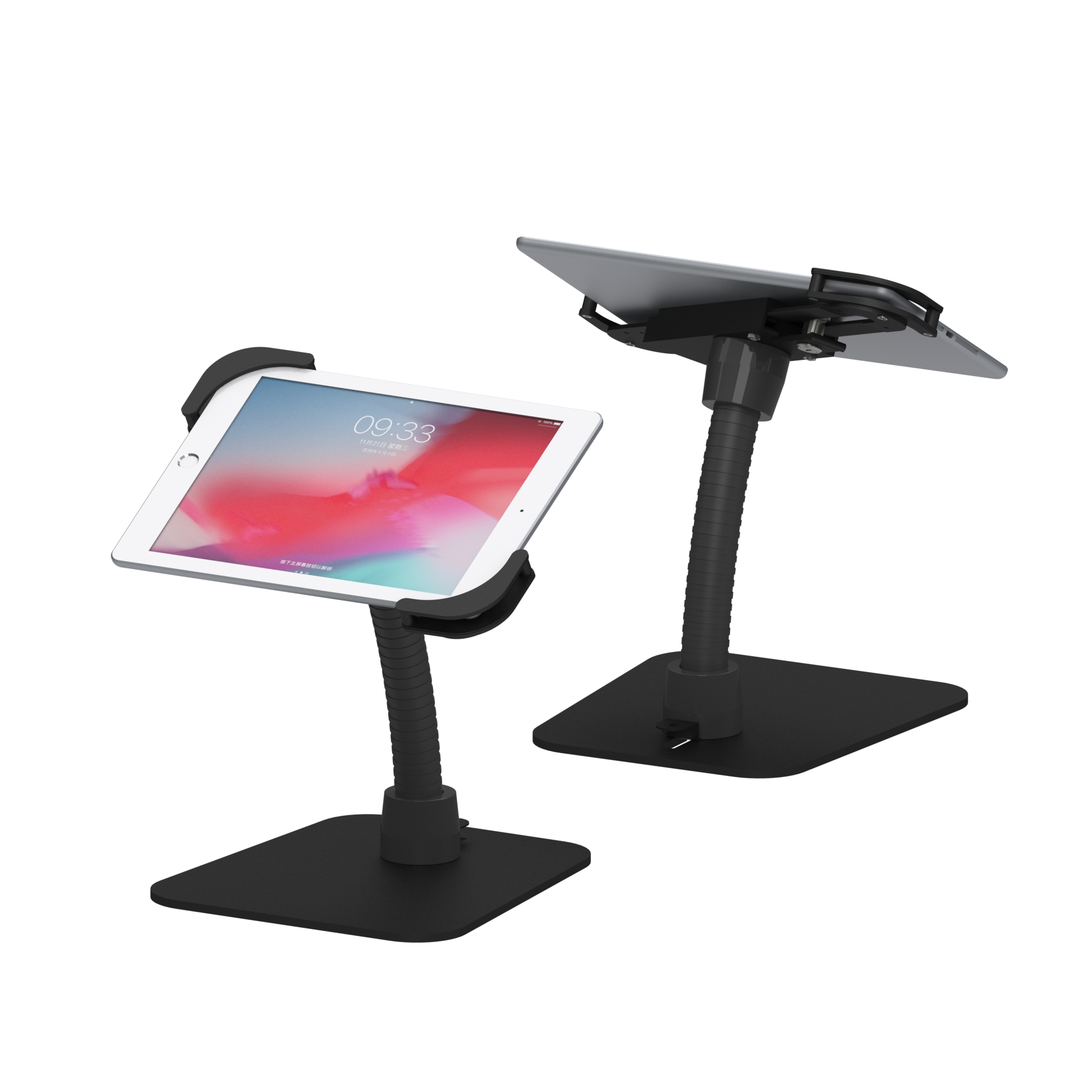 Counter Flex Series is a desktop secure tablet kiosk stand features a highly flex tube. It offers full range of movement allowing it to be displayed and used at angle. Made of durable metal assure it can stay a position firmly. Cable can be routed through the tube so that gives clean look. Ideal for restaurant, shop, hotel, tradeshow. With base or without base two choice.