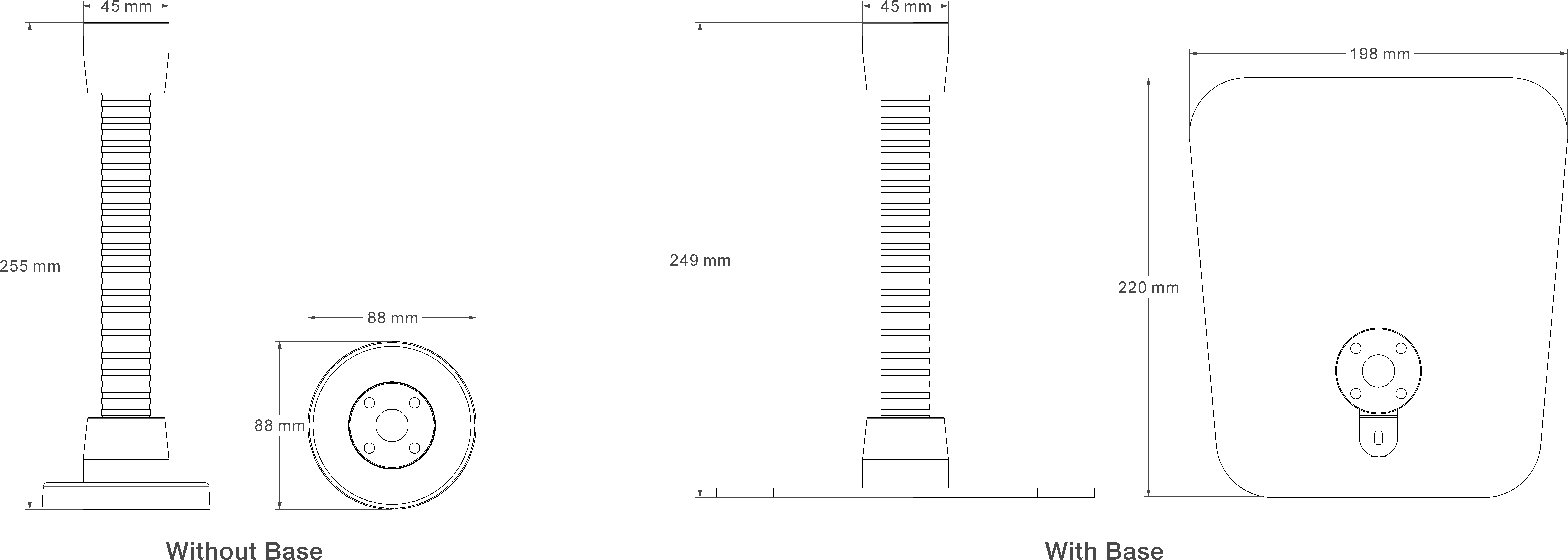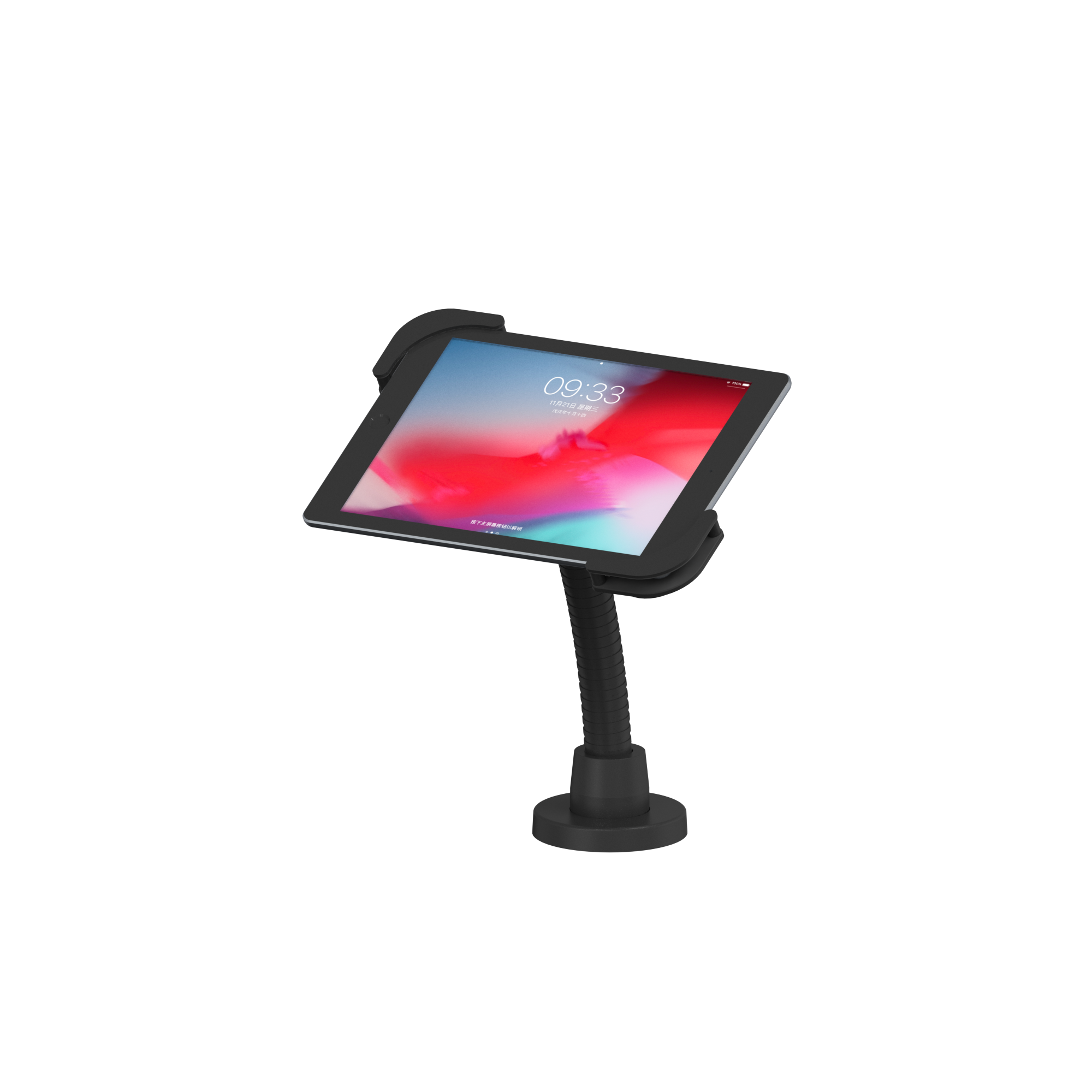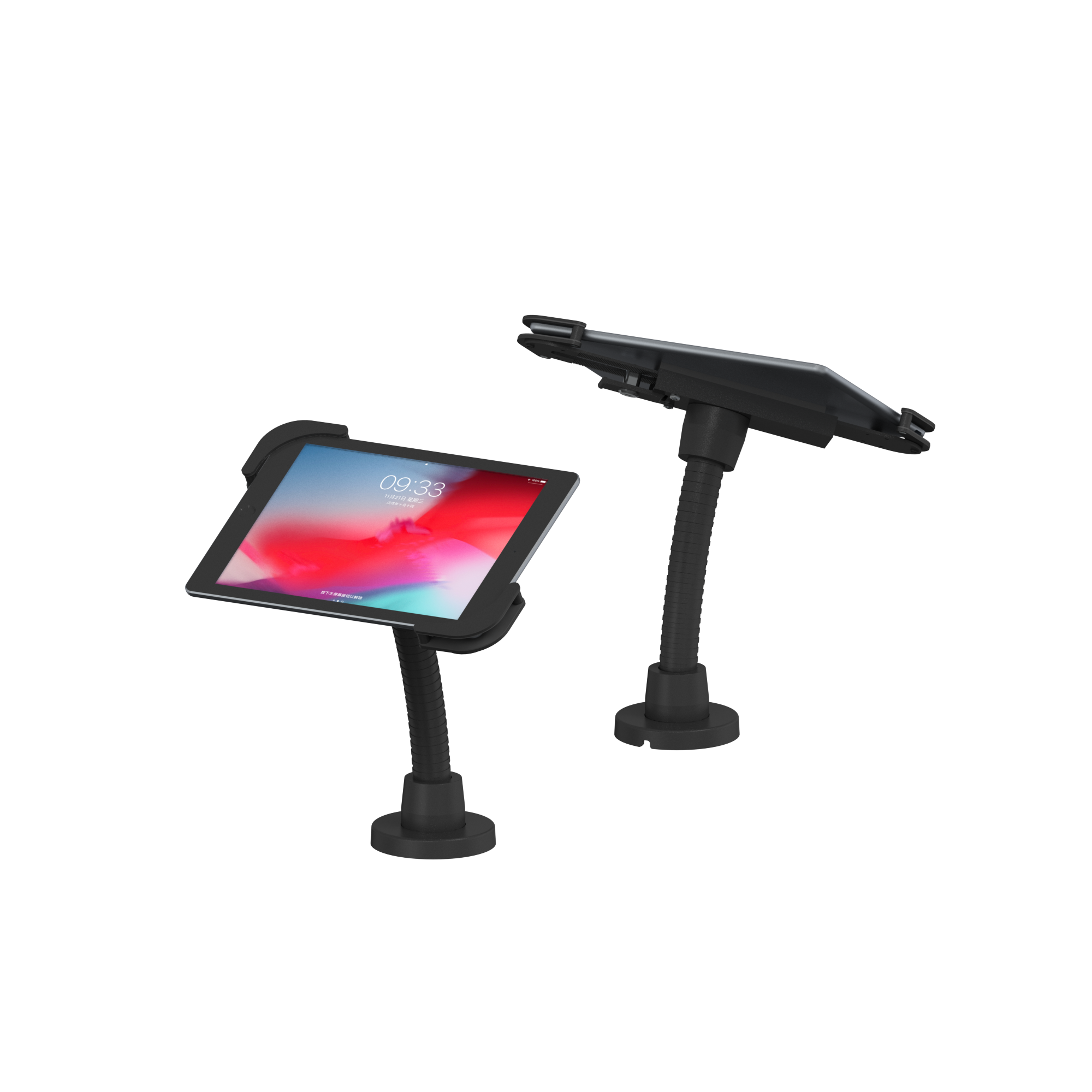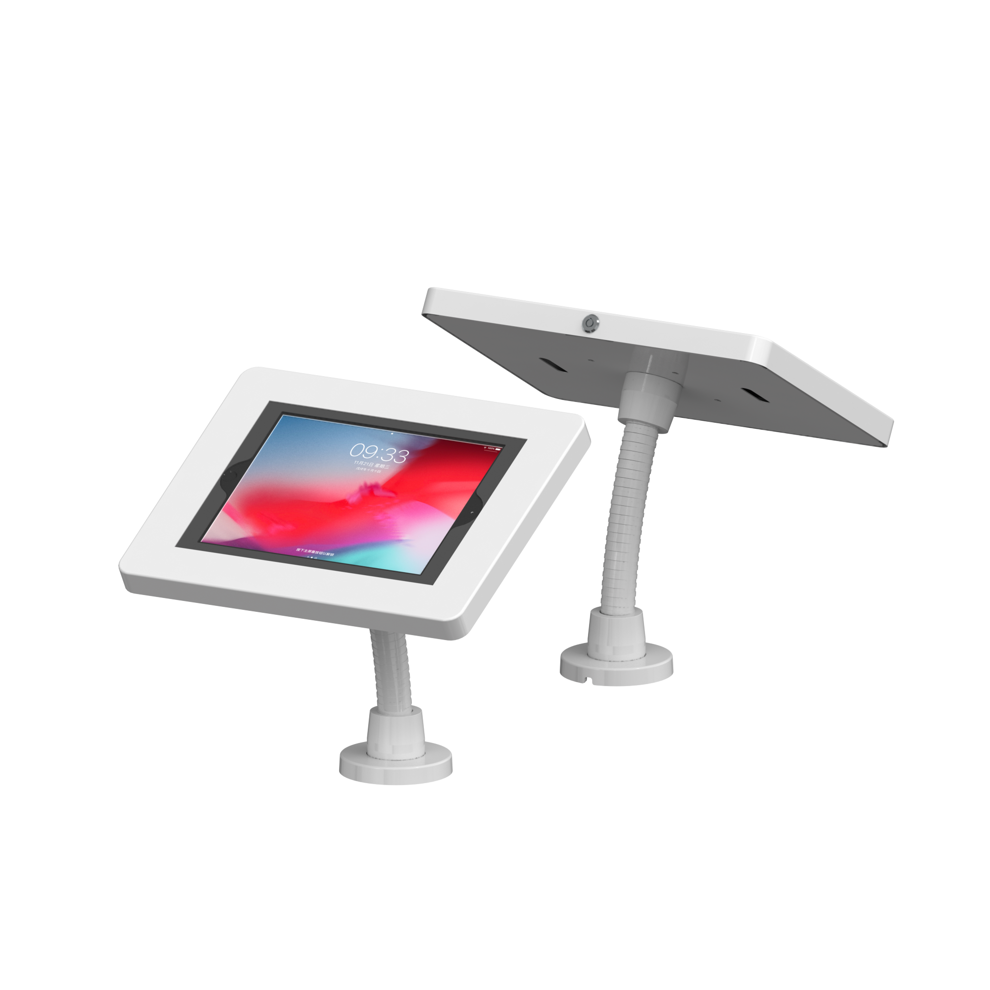 Counter Flex Series is a desktop secure tablet kiosk stand features a highly flex tube. It offers full range of movement allowing it to be displayed and used at angle. Made of durable metal assure it can stay a position firmly. Cable can be routed through the tube so that gives clean look. Ideal for restaurant, shop, hotel, tradeshow. With base or without base two choice.