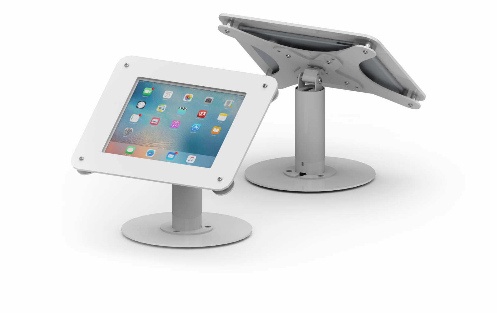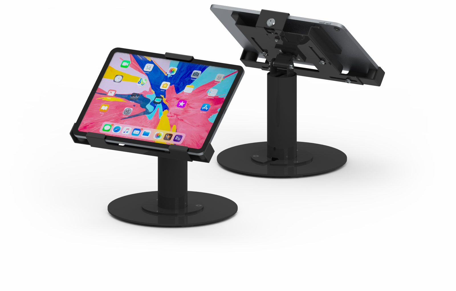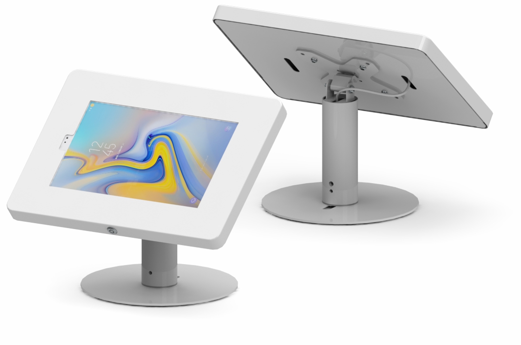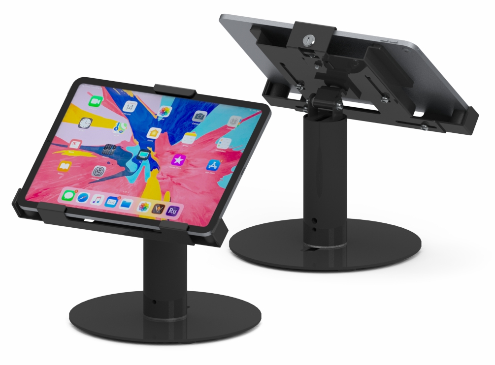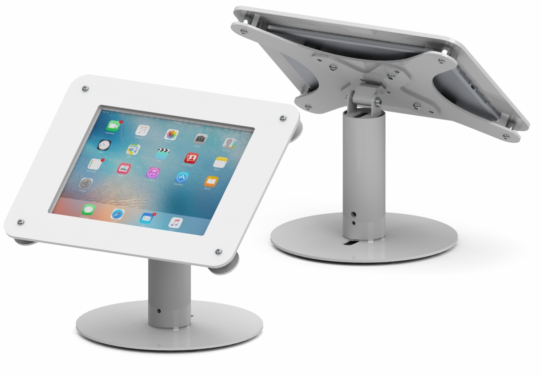 Counter Straight Series tablet kiosk stand features a straight rise pole with tilt & swivel hinge. It is rotary easy to