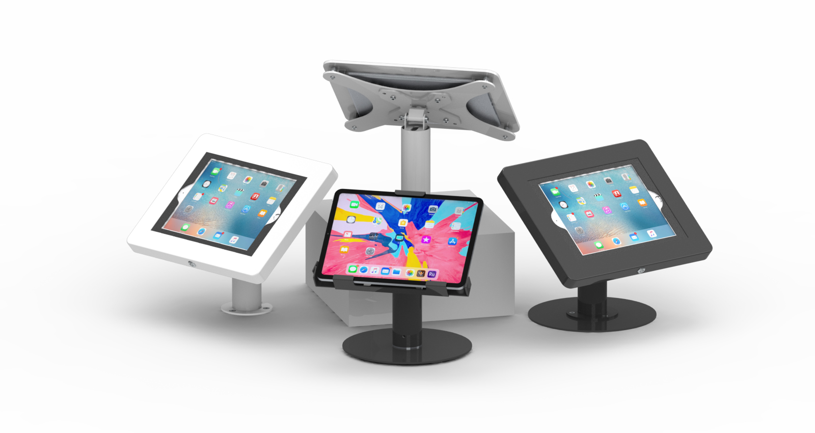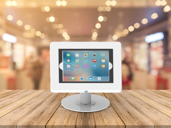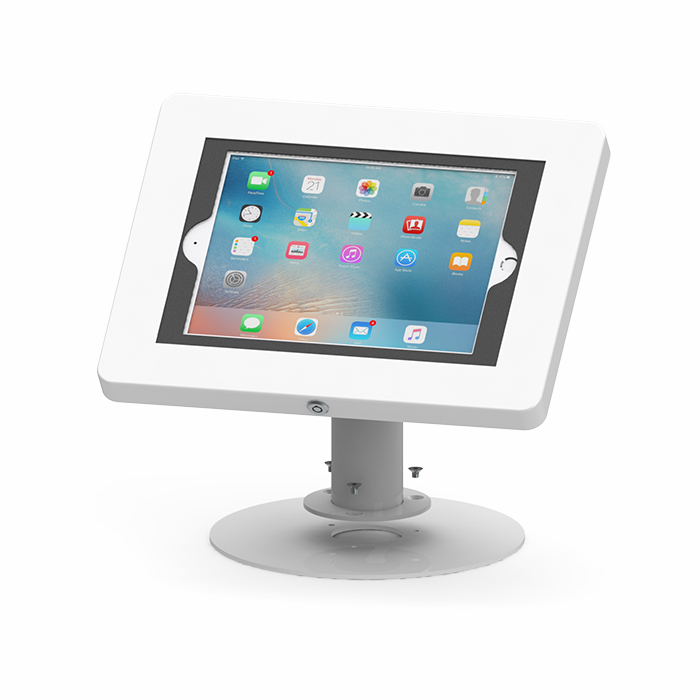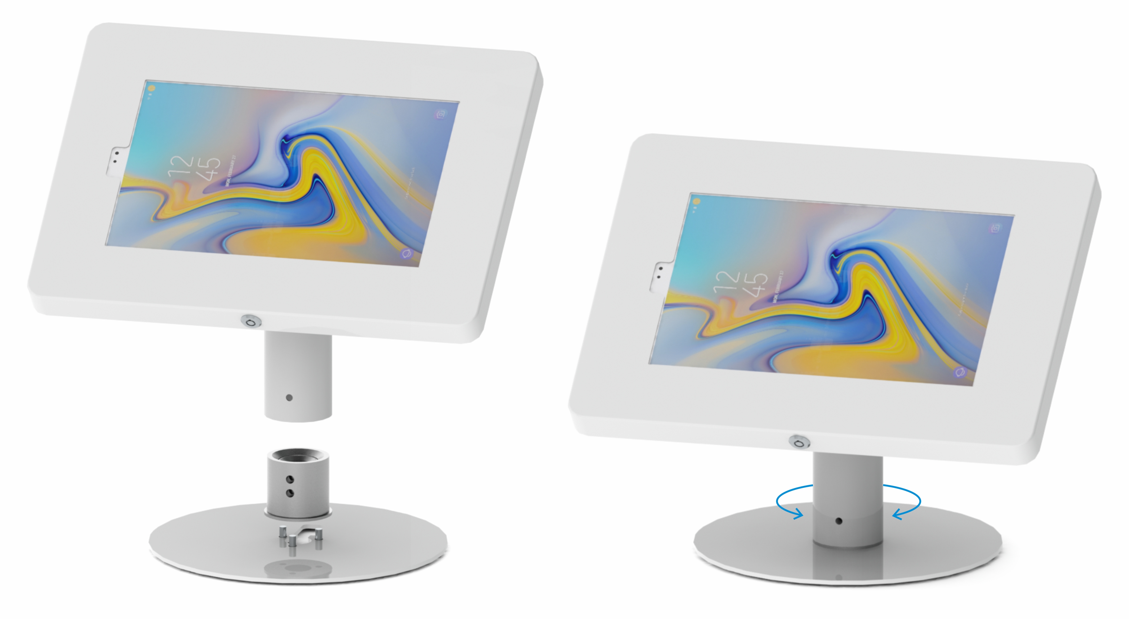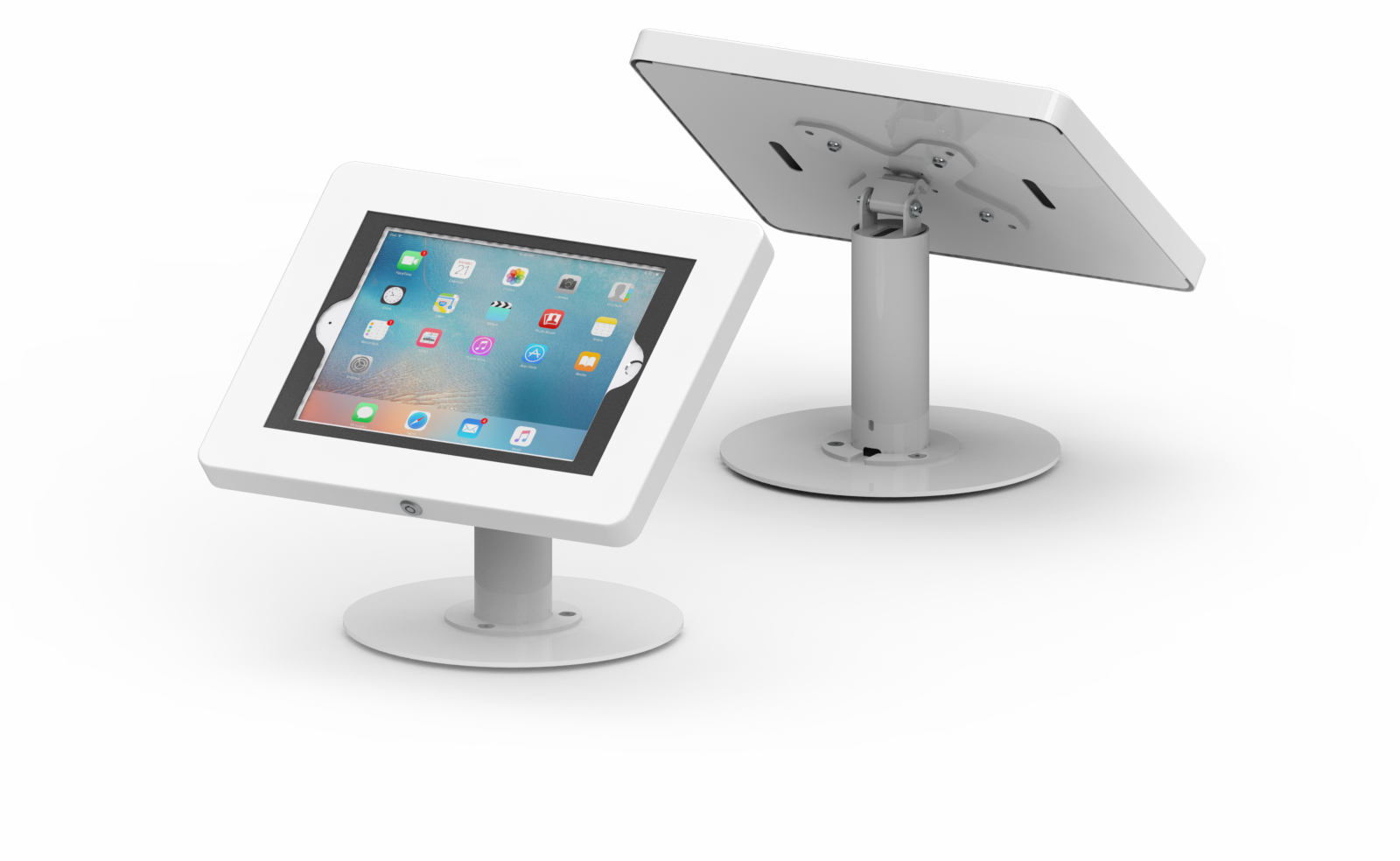 Counter Straight Series tablet kiosk stand features a straight rise pole with tilt & swivel hinge. It is rotary easy to
