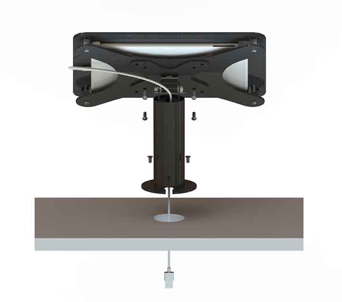 Cable free look. Cable can be routed inside of the pole and out from the base or bottom of the table (Cable not ncluded)