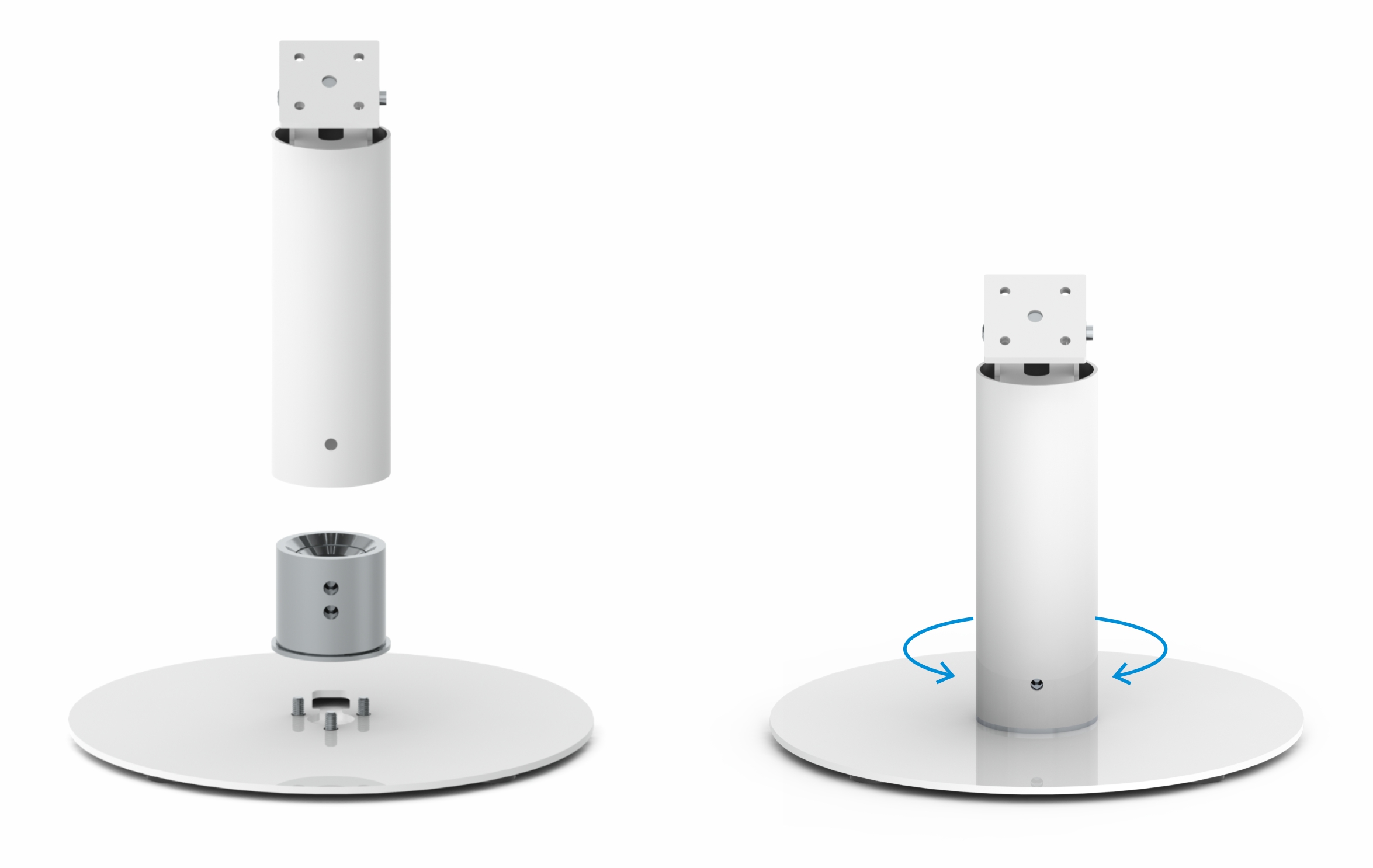 set portrait/landscape and you can flip the screen over or tilt to ideal viewing angle with ease. Standard with a round sturdy base plate and you can also remove it to mount the stand directly on table or any flat surface.