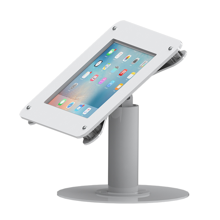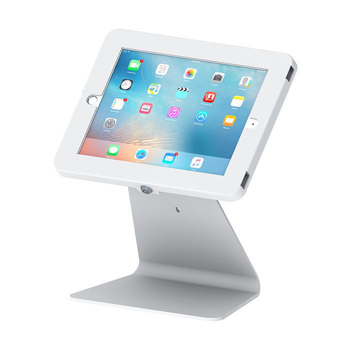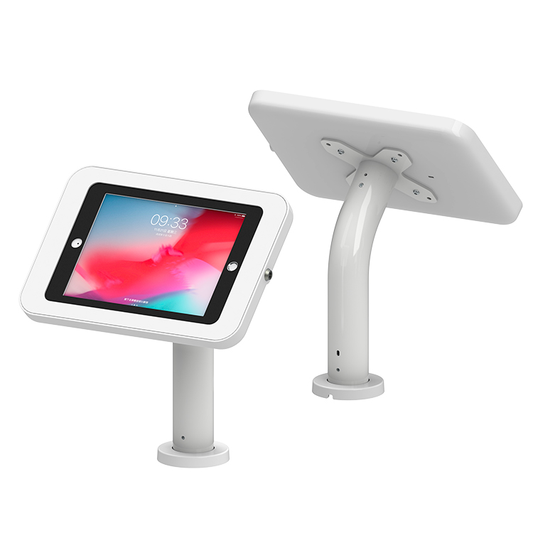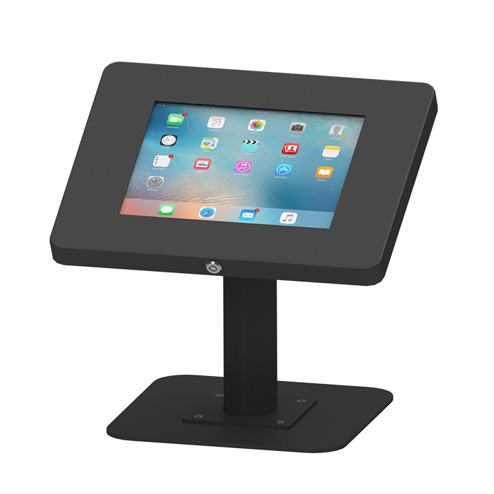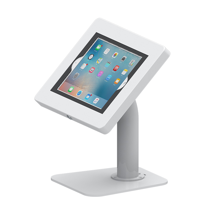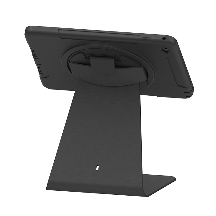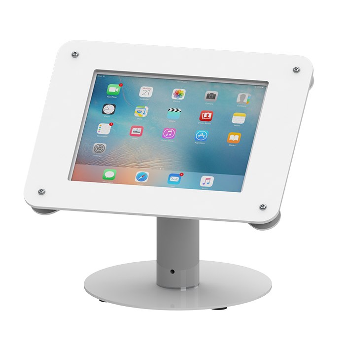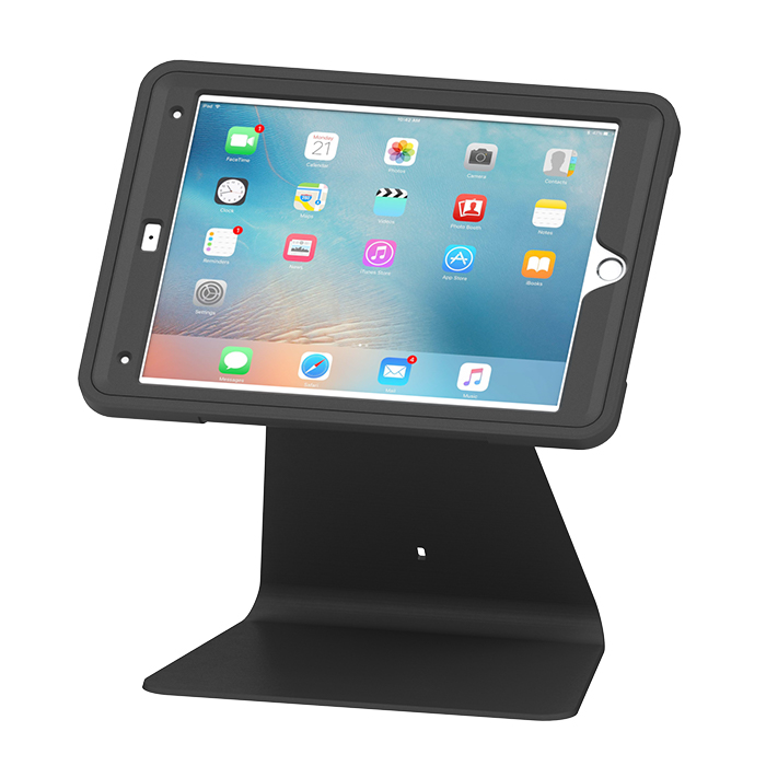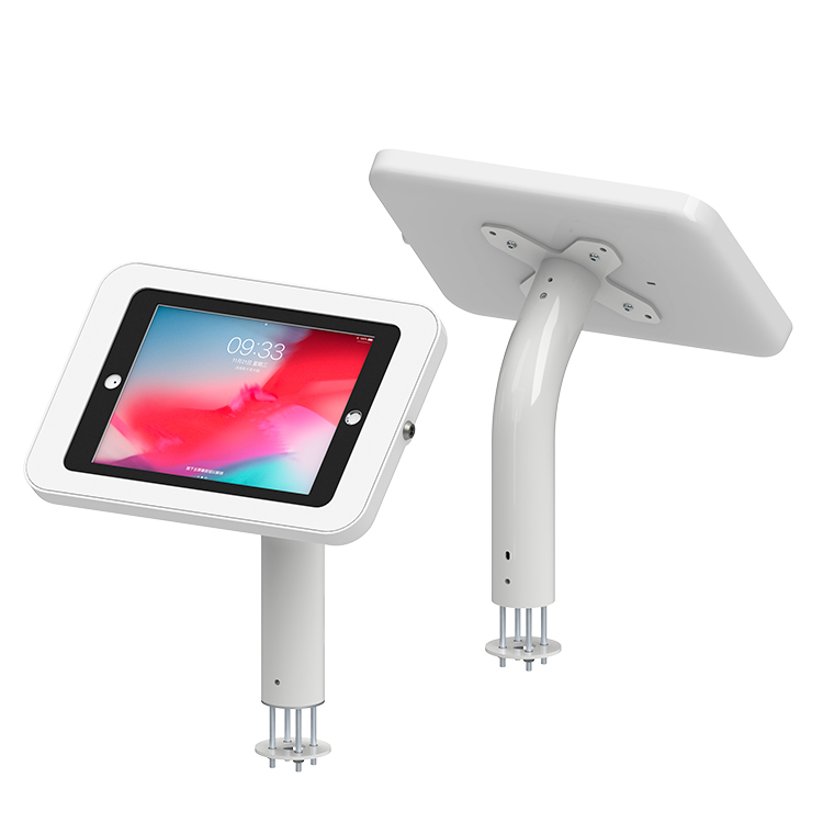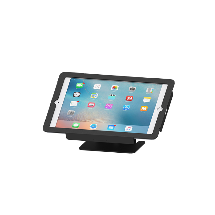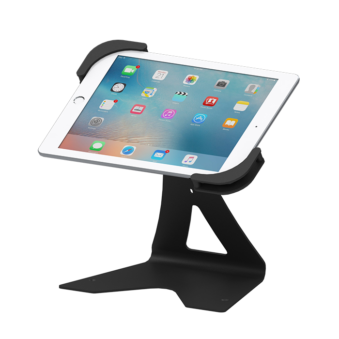 designed to secure tablet display directly on table, desktop surface with hidden wiring