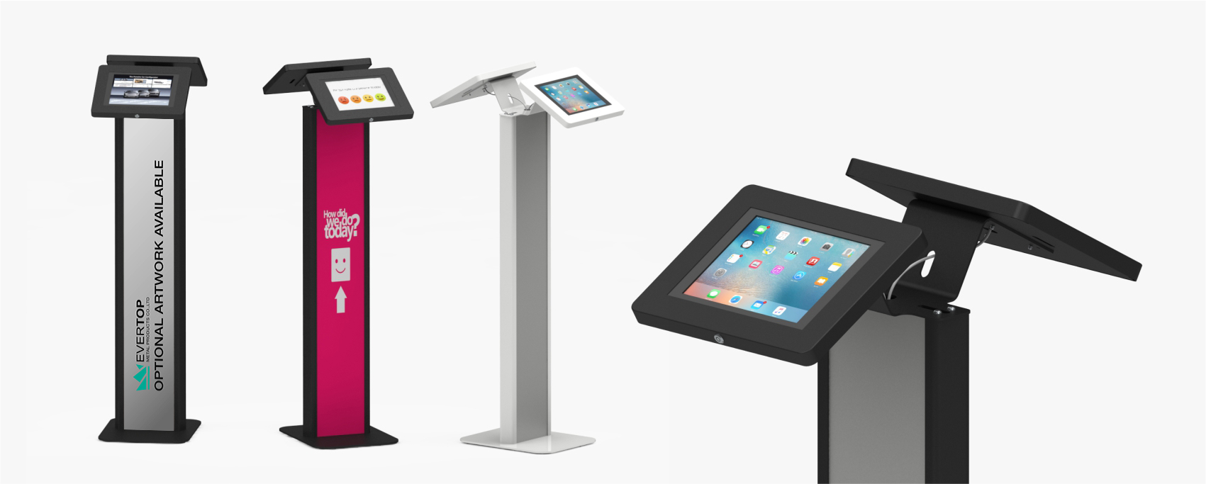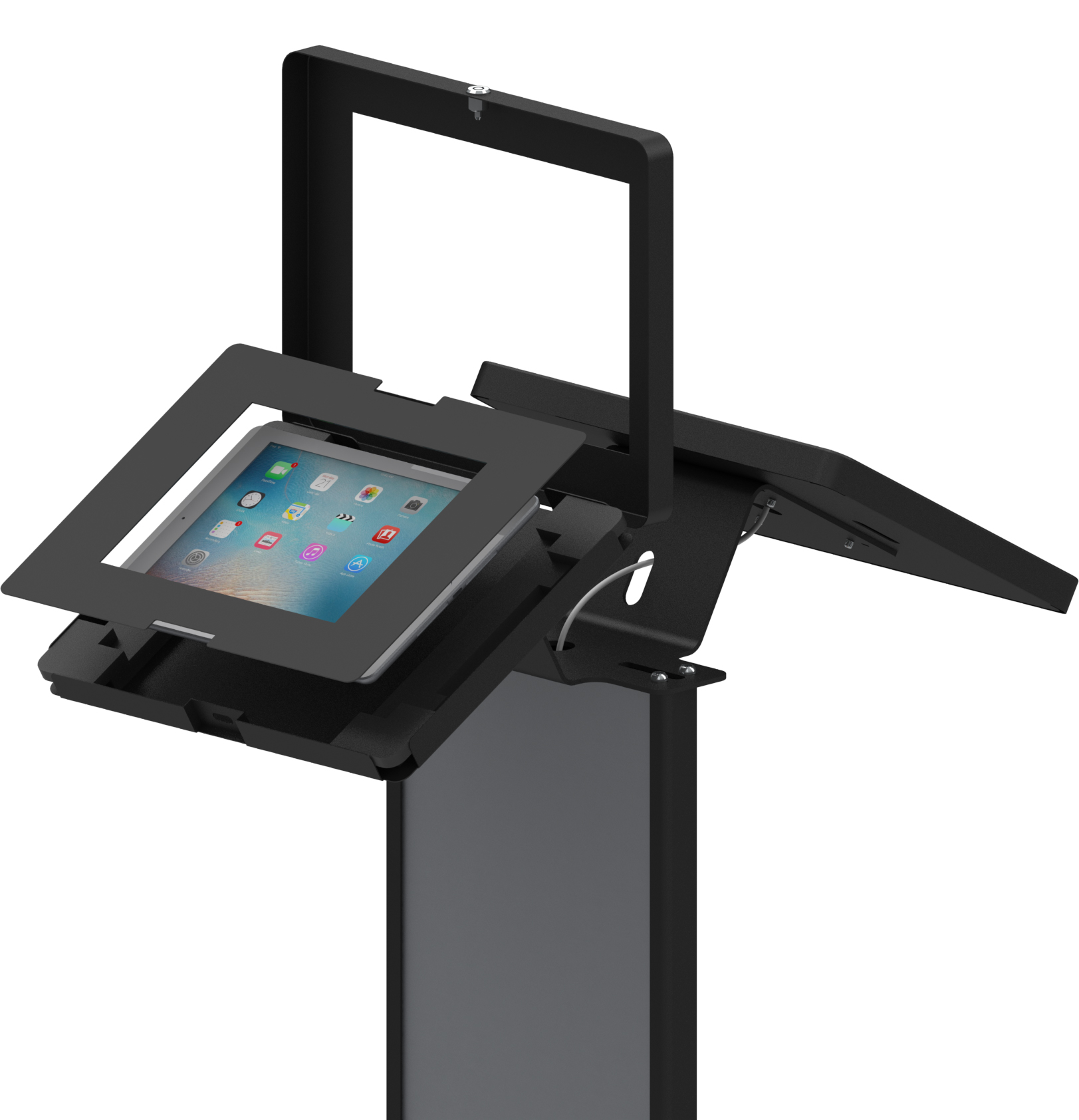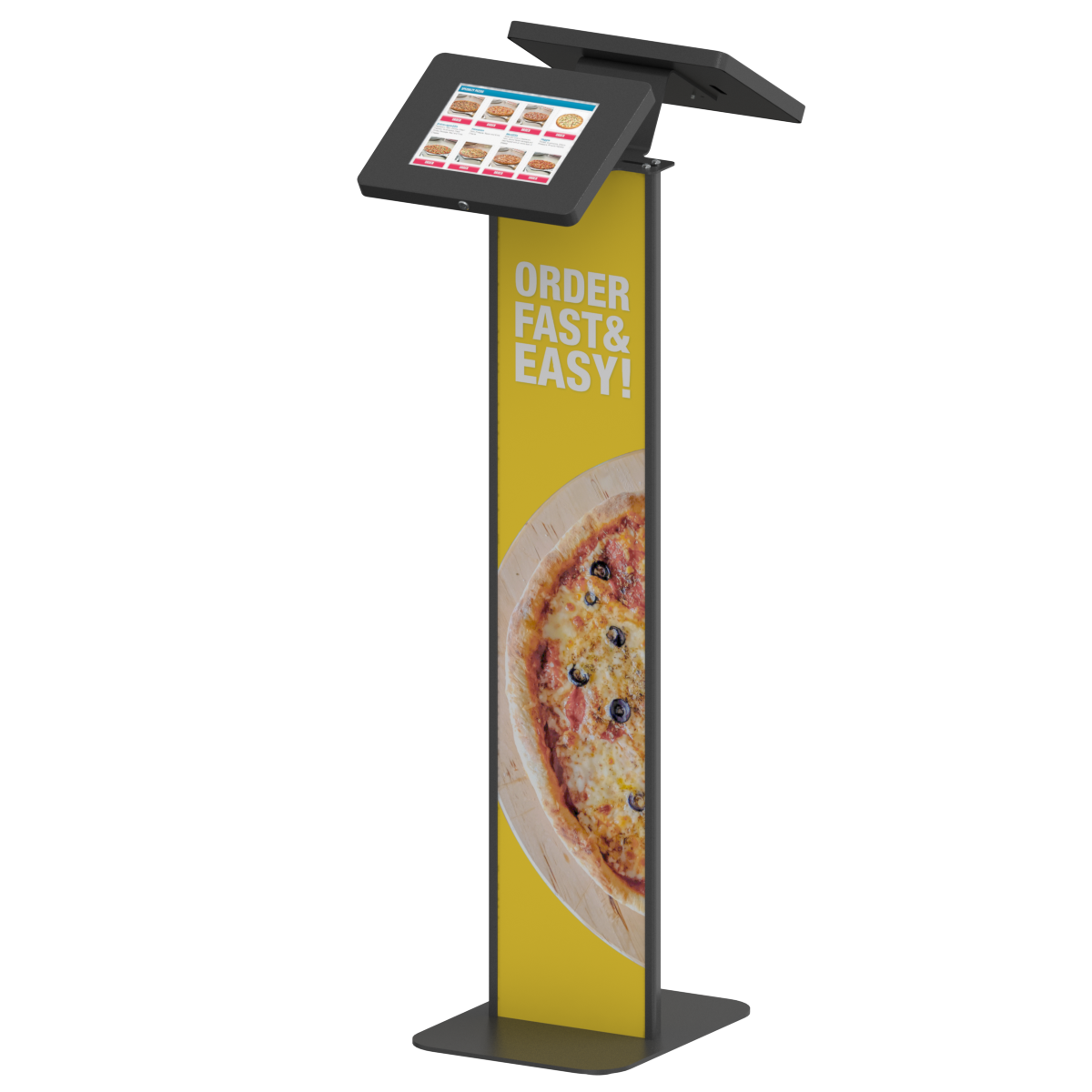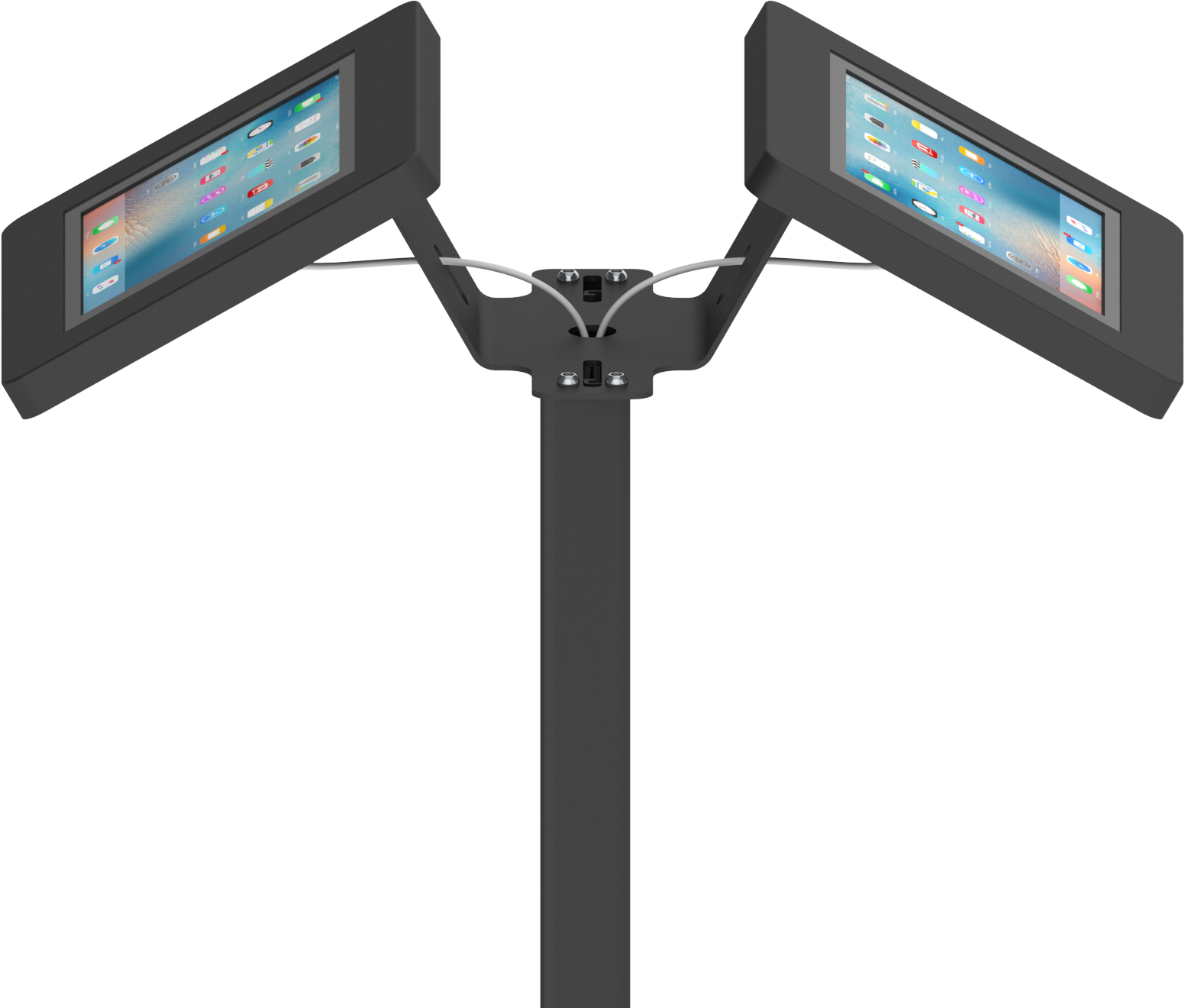 Floor Dual Elite is an attractive and highly brandable floor standing secure tablet stand specially designed for holding double sided 2 tablets. It can serve more users from a relatively small footprint. Changeable aluminium-plastic composit front panel which is graphic addable gives maximum exposure. Stylish & slim design ideal for tradeshow, retail, hospitality & so on.