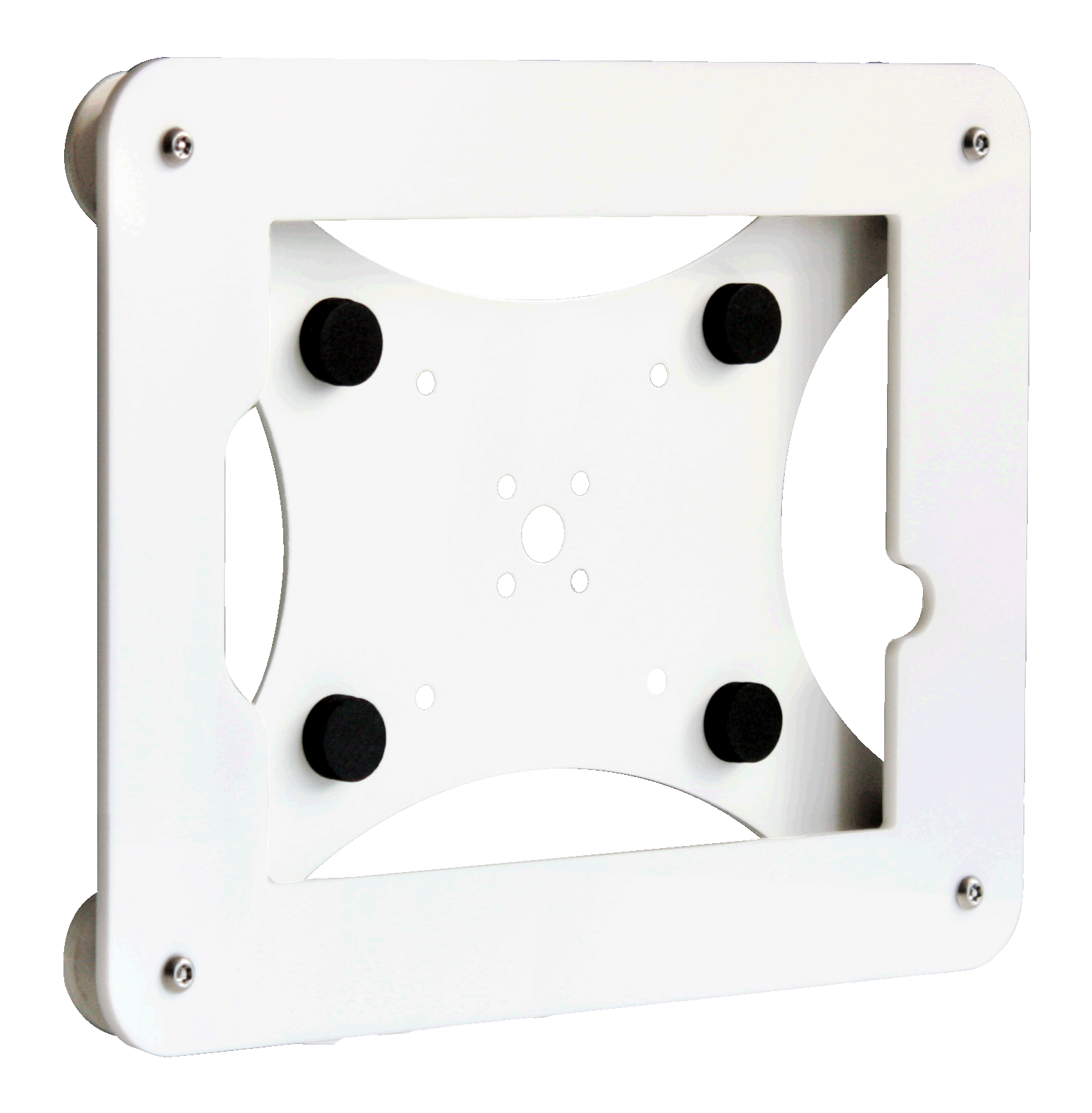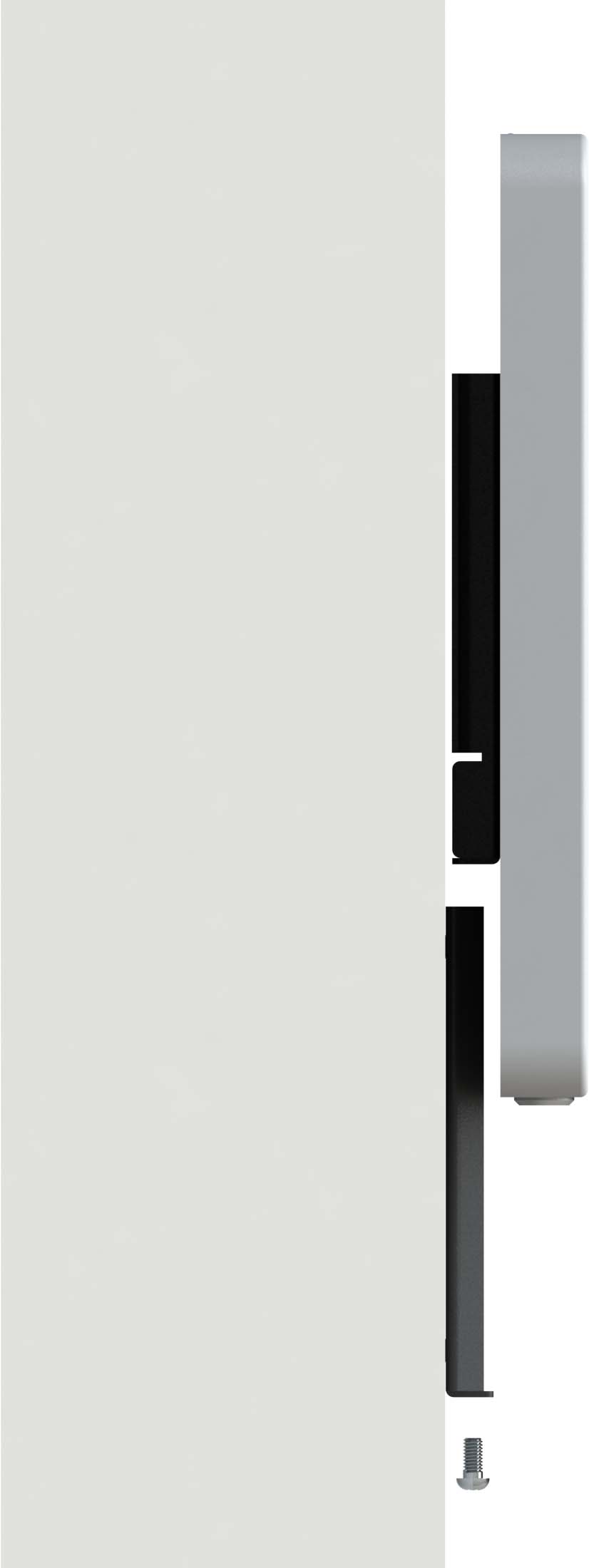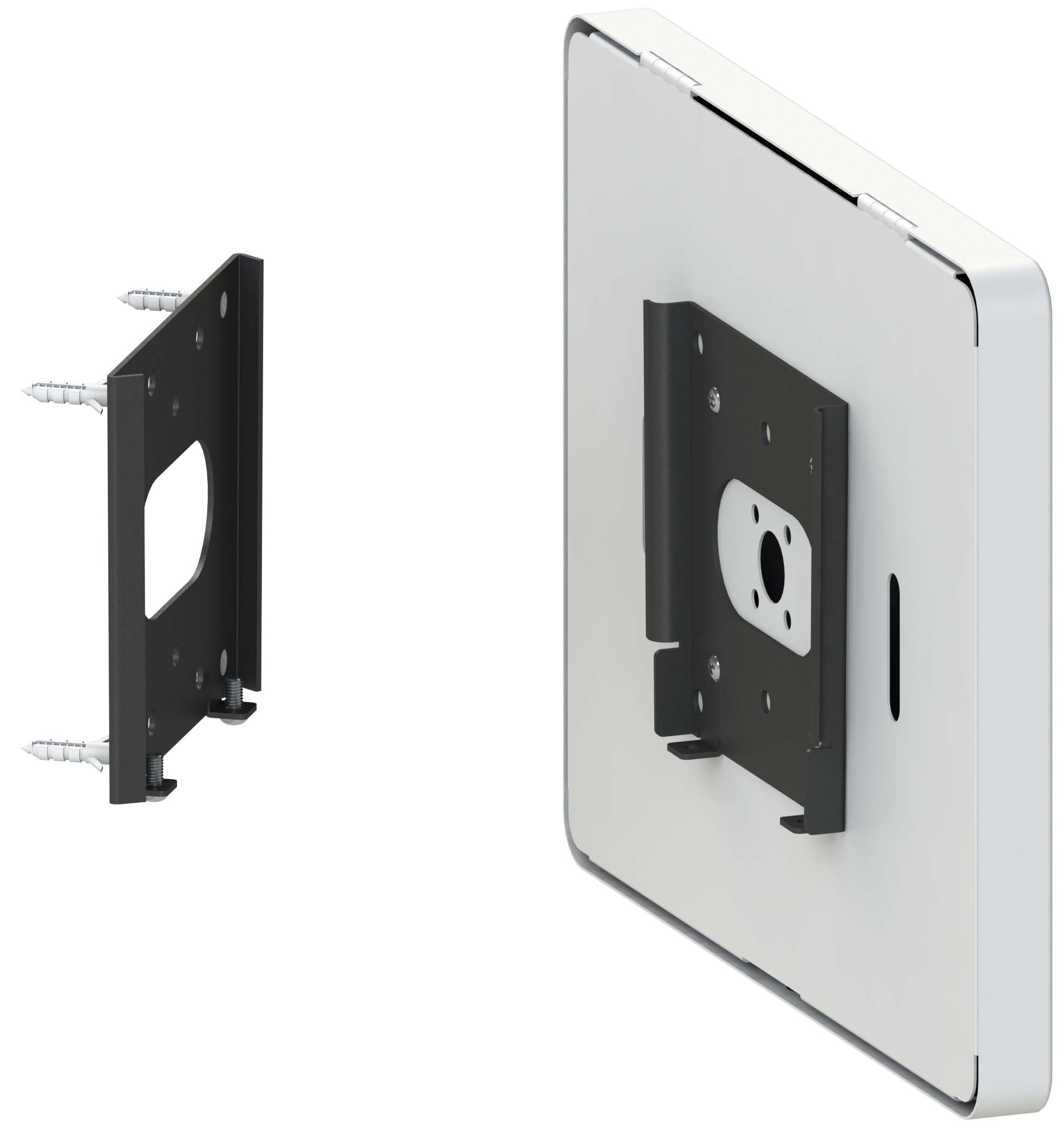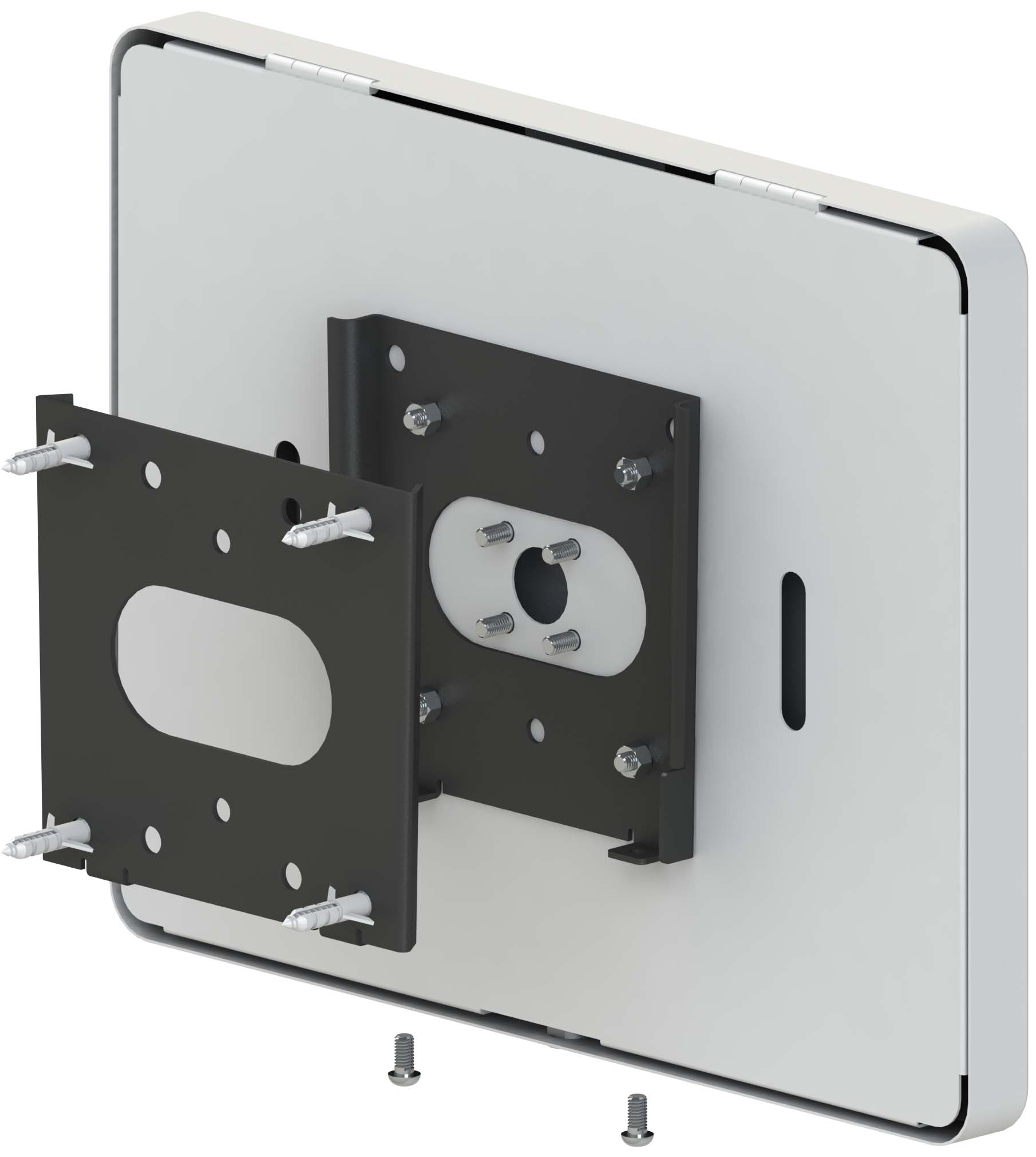 Quick On/Off wall bracket is combined by 2pcs brackets. One is to be fixed on wall and another is installed on the tablet enclosure. Separable design allows quick docking or removal of your tablet after mounting it onto the wall - or - protect your tablet against removal with the (2) simple locking screws at the bottom.
