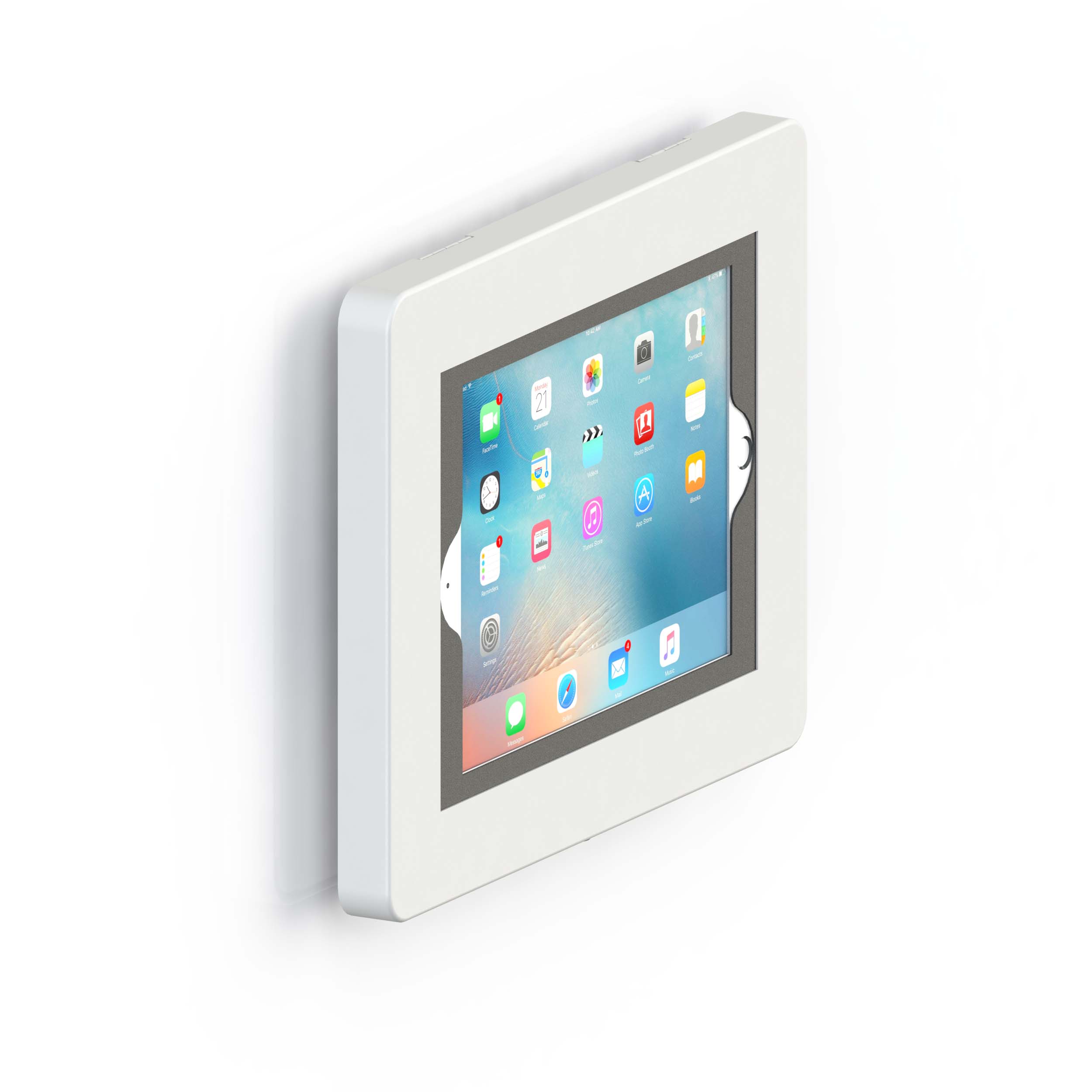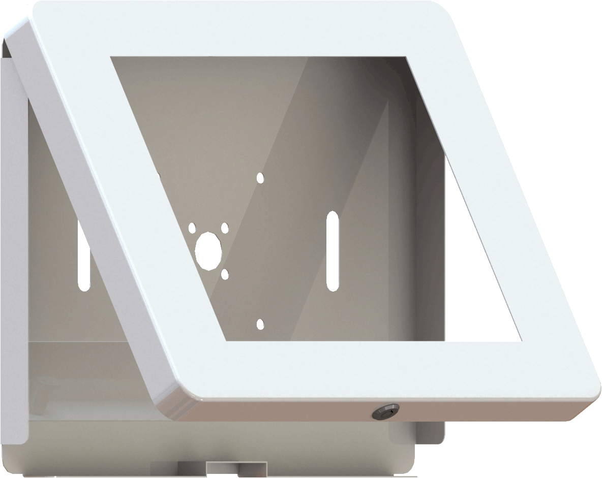 The bracket can be locked by 2 bottom screws and the enclosure is not removable when added the locking screws. For tablet removal simply unscrew these 2 secure screws on bottom.