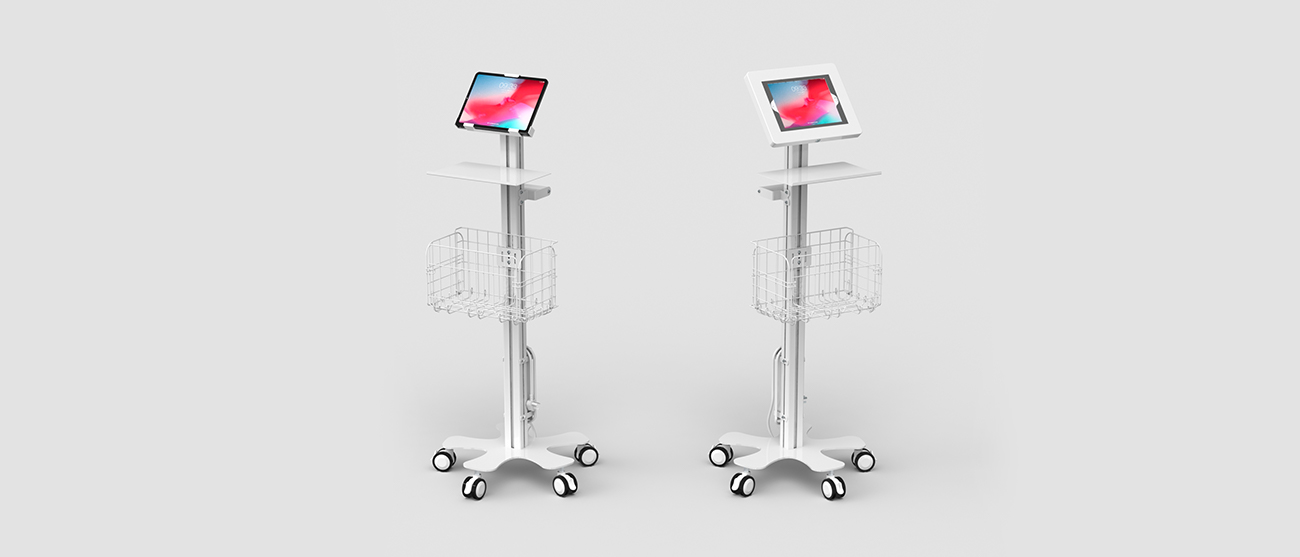 Talent series tablet work station cart is versatile and effortlessly mobile. It features a grooved aluminum pole which allows to add on different components up and down the center pole. A variety of add-on accessories to fit your specific needs. Ideal to use in hospital as medical carts, warehouse or office as work station or any other places that need a mobile secure tablet kiosk.